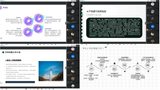 7月30日上午9:40开展了第二期培训,本次培训由辅导员程成主持,参加会议的有sm调教 2022级各专业辅导员及学生班主任。由2022级新生学生班主任根据制定的班级学年工作计划进行汇报交流。给水专业学生班主任徐锦辉和苏潇赞表示要在工作的实施过程中及时调整,建设出一个优秀班集体,希望让新生感受到“此生无悔入给水,来生还做常大人”。给水专业辅导员张争对两位的工作计划给予了建议,并希望两位能将计划落实到具体工作中。工程专业学生班主任刘璐和刘硕表示希望以自身之力起到表率作用,带领学生不断进步,以身作则带动专业发展。工程专业辅导员邵丹迪对两位工作计划表示认可,希望两位站在不同的角度思考解决问题,并表示“道阻且长,未来可期”。土木专业学生班主任赵梓汝和孙萌萌介绍了学生班主任的各种身份,为新生能更好、更快地融入大学生活做了充足的准备,使学生对班级有归属感,责任感,荣辱感。土木专业辅导员程成希望各位学生班主任,细致规划工作,做到“顶天立地”,构建更完美的班级。建环专业学生班主任杨如梦和苏泳文从开学前的准备,到对自身和新生的要求,详实细致,考虑全面,切实为新生提供有效的帮助。并表明计划赶不上变化,要依据实际,不断完善。建环专业辅导员李欣一对两位学生班主任的规划进行了点评,希望二位能够制定一定的量化标准,为班级建设添砖加瓦。