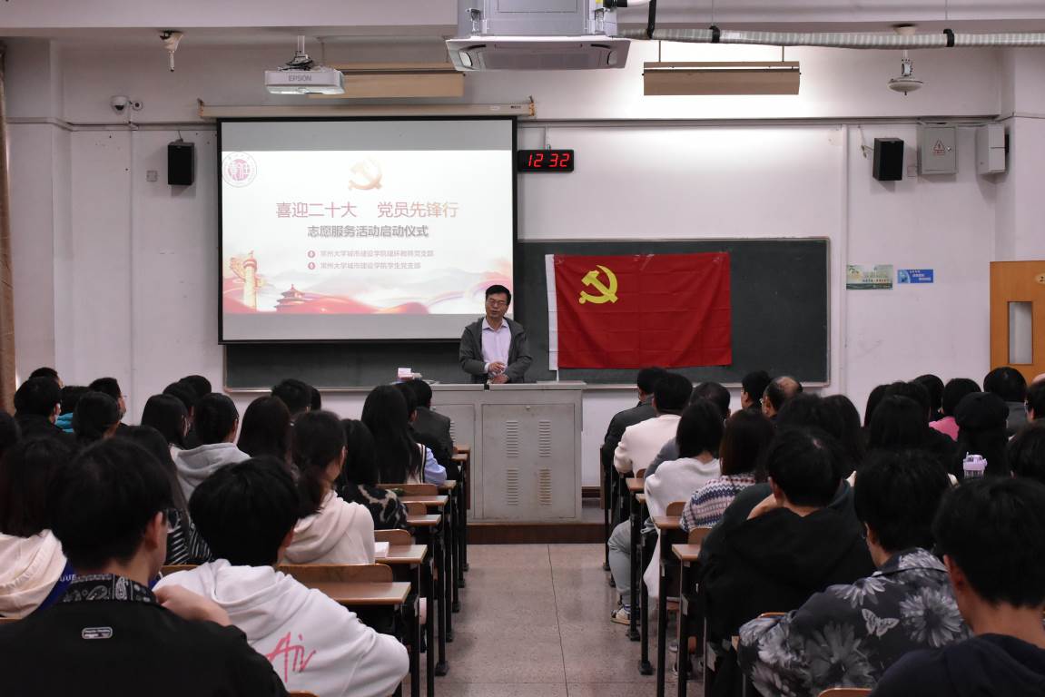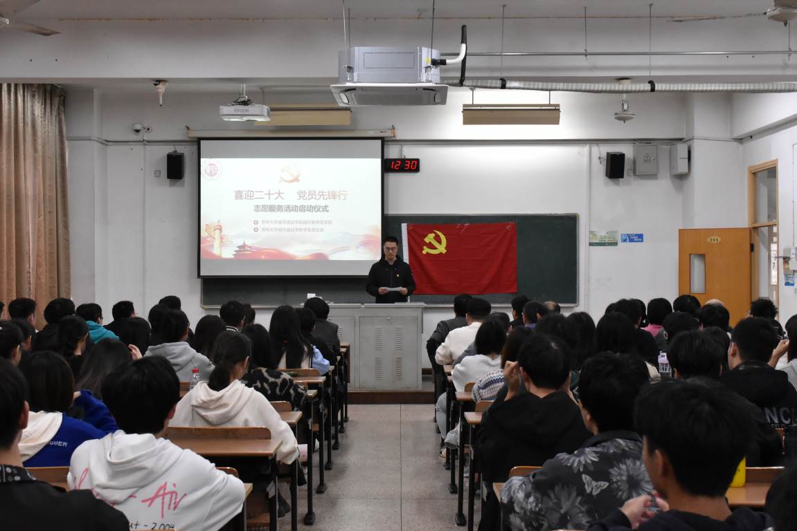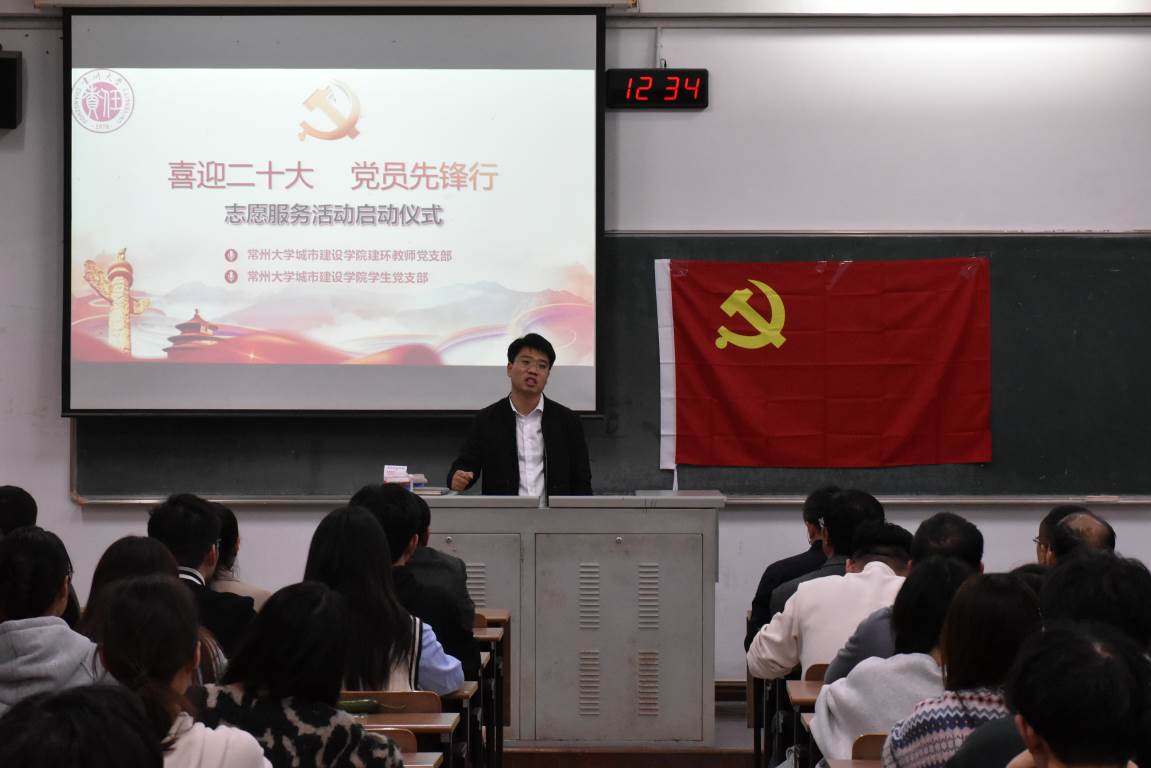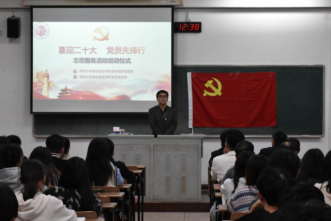 金秋迎盛会,共启新征程。为迎接党的二十大胜利召开,深入弘扬志愿服务精神,教育引导广大师生坚定初心跟党走,建功立业新时代。sm调教 特举办以“喜迎二十大,党员先锋行”为主题的志愿活动启动仪式。活动于2022年10月21日在W1213教室举行,由院学生党支部第一支部副书记王发静主持,院党委副书记顾坚,副院长王新杰、许霞,院长助理杜尔登、陈春红、周年勇,建环专业负责人郭强,建环专业教师、教师党支部及学生党支部的全体党员出席活动。