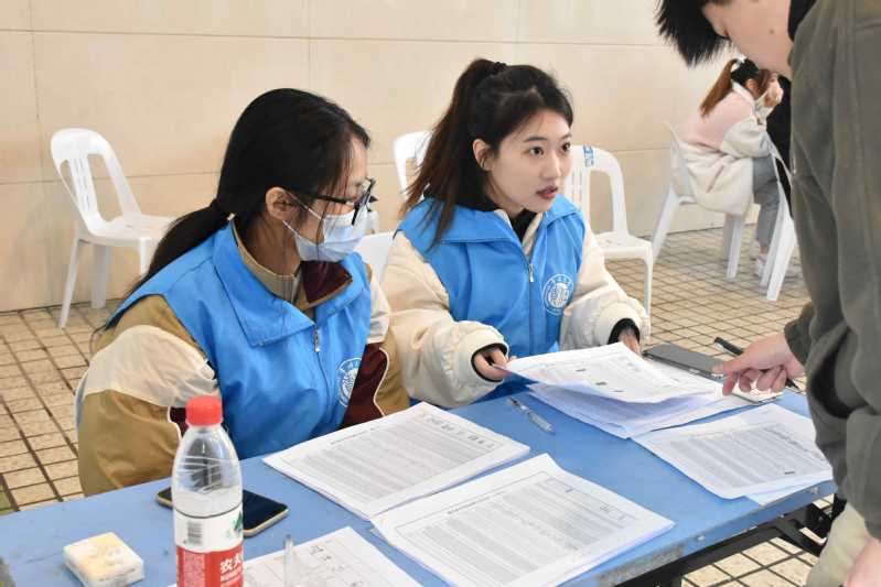 就业向未来,建功新时代。为弘扬“奉献、友爱、互助、进步”的志愿精神,进一步做好2023届毕业生就业服务工作,保障江苏省“百校联动”暨sm调教 2023届毕业生春季公益招聘会的顺利进行,2023年3月17日下午,sm调教 组织学生党员志愿者在主楼二楼平台为本次招聘会提供志愿服务。