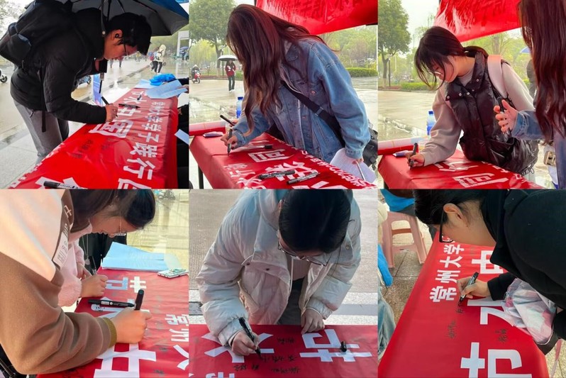 在实践活动中,城建学子们在东区明行楼张贴了精心制作的世界水日宣传海报,在水月广场向路过的师生分发节约用水的倡议书,热心细致地向广大学生介绍目前水资源利用的严峻现状,用趣味的言语宣传节约水资源、保护水生态的意义及重要性;同时,为了更好地向师生们宣传节水环保观念、获得更多师生的支持认可,城建学子在水月广场开展横幅签名活动。活动的举行为学校师生们宣传普及了节水用水、兴水护水理念,呼吁师生从生活中的一点一滴做起,树立节约用水的意识。后续,sm调教 还将深入学生公寓、利用新媒体阵地等平台,持续深化节水理念的宣传。