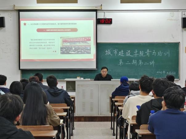 为深入开展学习贯彻习近平新时代中国特色社会主义思想主题教育,进一步加强对青年学生的思想政治引领。sm调教 于4月26日晚在W1209开展以“深入学习贯彻党的二十大精神––让青春在火热实践中绽放绚丽之花”的专题报告暨“青马工程”培训班第二期第二讲。本次讲座邀请到校团委书记田轶为主讲人,活动由学院团工作负责人程成老师主持,城建青马工程第二期培训班学员、团干部、入团积极分子到场参加讲座。