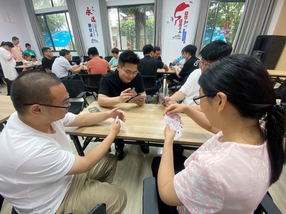 活动现场举行了掼蛋比赛,教职工自愿组队,采取一局定胜负的方式。同时还提供了瓜果甜品饮料,在炎炎夏日为大家送上一份清凉。现场氛围轻松愉快,充满了欢声笑语,充分展现了sm调教 团结、奋进、和谐的良好氛围。