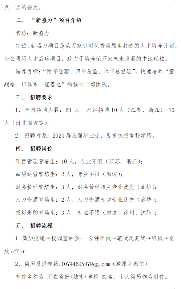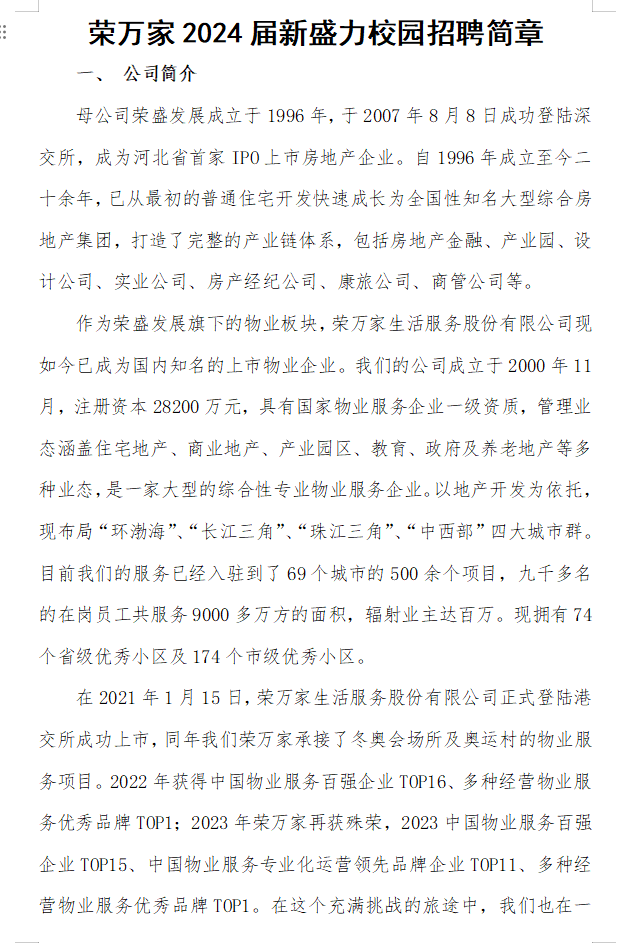 招聘[2024049]荣万家生活服务股份有限公司常州分公司校园招聘简章