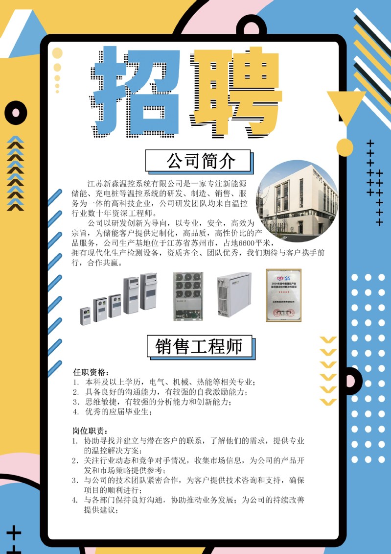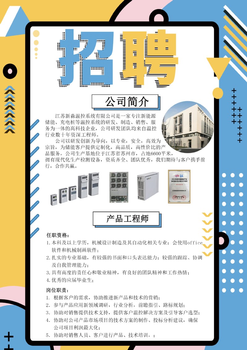 招聘[2024074]江苏新淼温控系统有限公司2024春季校园招聘