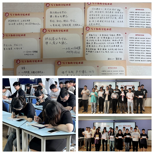 最后,学生党支部发起“写下你的守纪承诺”活动,同学们结合自己的专业特点,纷纷将自己的守纪承诺汇成文字写在卡片上,以实际行动践行承诺,将党纪学习教育的成果转化为推动学习工作的强大动力。