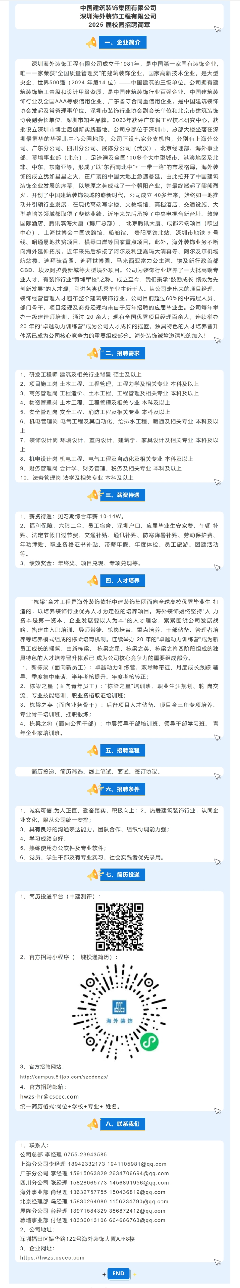 招聘[2024103]深圳海外装饰工程有限公司2025届校园招聘