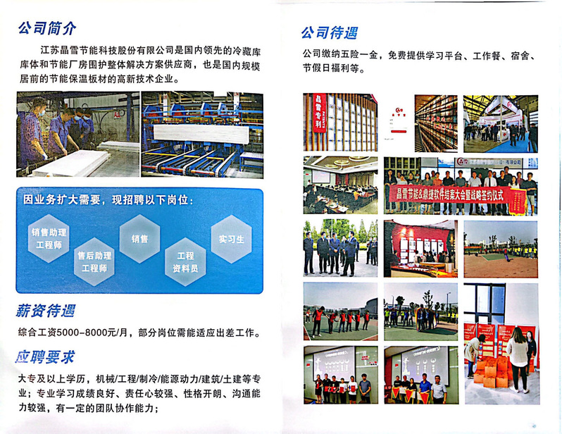 招聘[2024159]江苏晶雪节能科技股份有限公司2025届校招