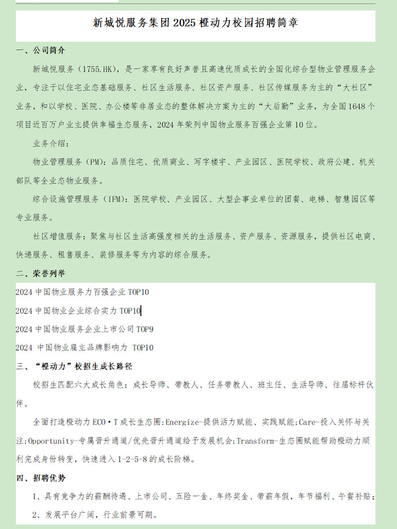 招聘[2024170]新城悦服务集团常州分公司2025届校招