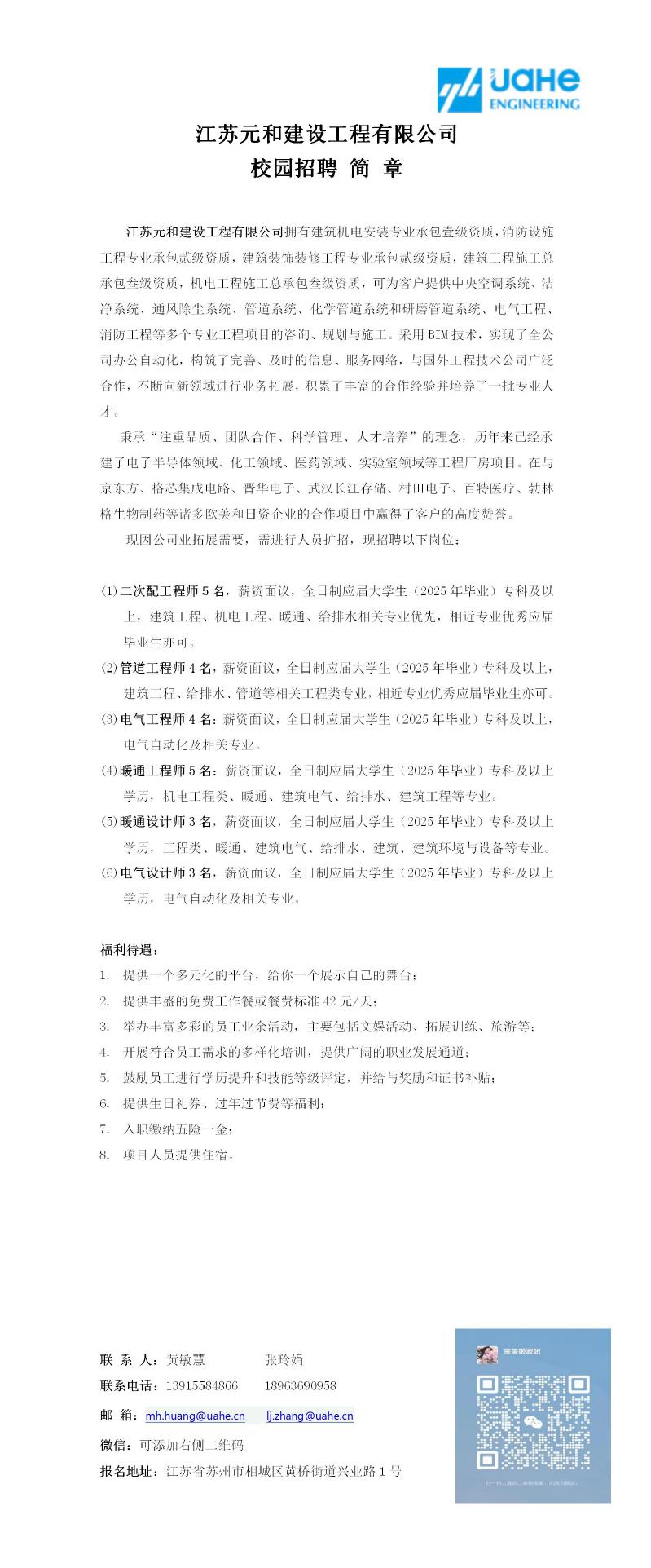 招聘[2024180]江苏元和建设工程有限公司2025校园招聘