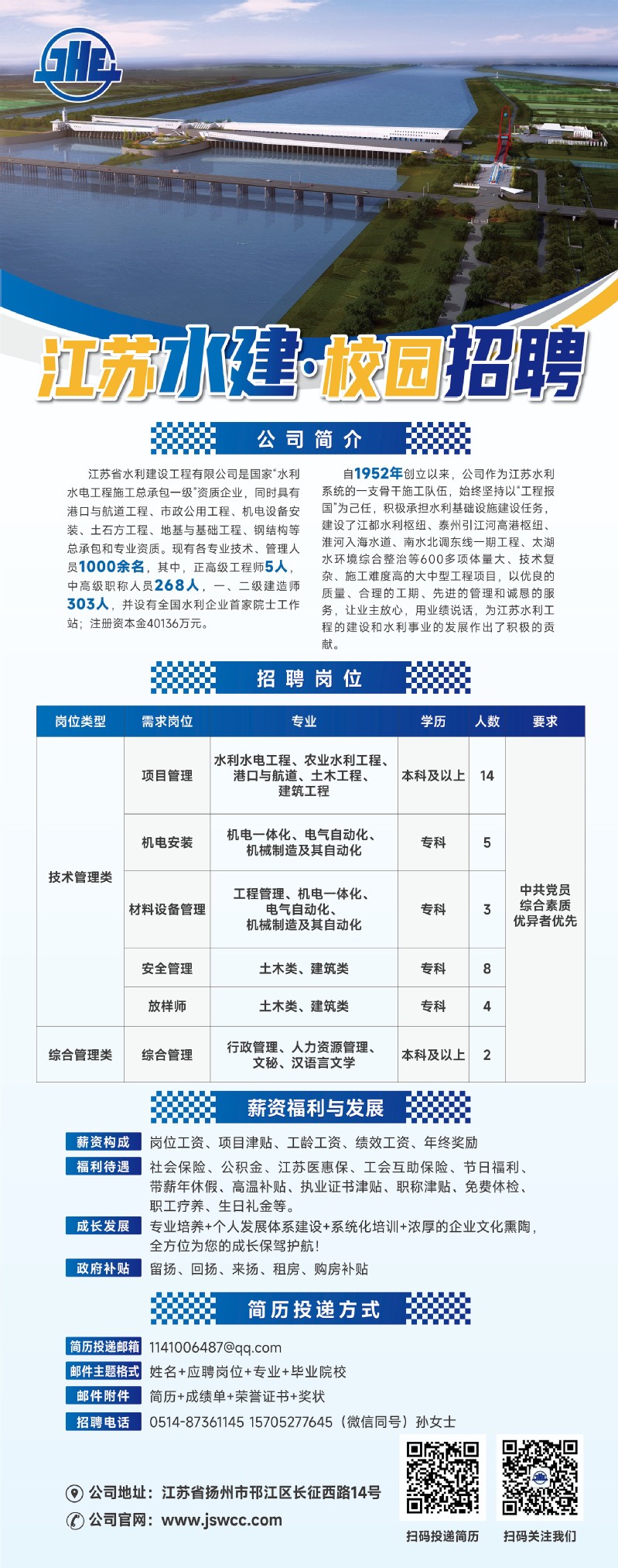 招聘[2024184]江苏省水利建设工程有限公司2025校园招聘