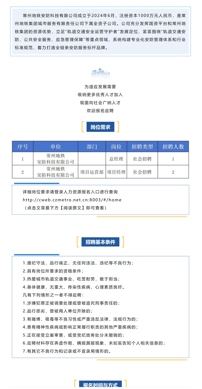 招聘[2024217]常州地铁安防科技有限公司2025年招聘
