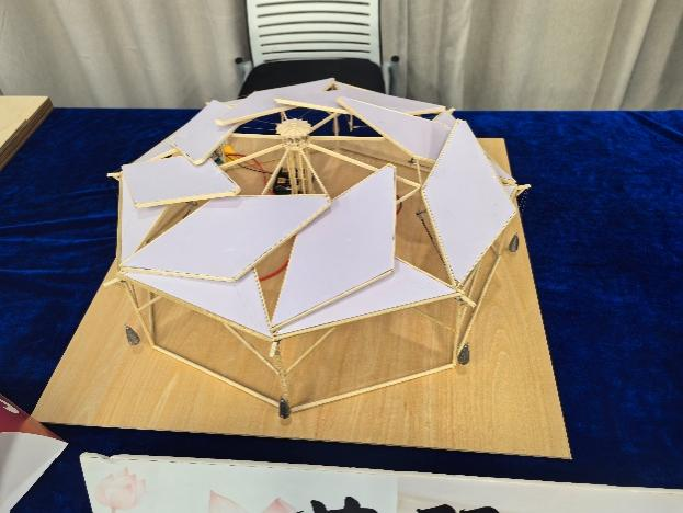 据悉,本次比赛设有模型加载和模型展示两个组别。其中,模型加载组以“乌篷船模型结构设计与制作”为主题,要求选手现场运用竹材制作满足复杂荷载要求的轻量化结构,通过模型制作、多级加载测试及答辩陈述,全面考察了参赛者的力学理解、创新思维与实践应用能力,经过激烈角逐,我校模型加载组(桂鑫宇、郜忠猛、陈启明)沉着发挥,斩获一等奖(指导教师:杨磊、周彬彬);模型展示一组(张杰、张一发、范佳炜)作品《莲翼》创新地提出钢索协同大跨度花瓣穹顶开合构造斩获一等奖(指导教师:王少伟、周彬彬),模型展示二组(张钲雨、陆淑林、沈昊翔)作品《星荷云渚》以独具特色的建筑结构荣获二等奖(指导教师:刘健鹏、杨磊)!