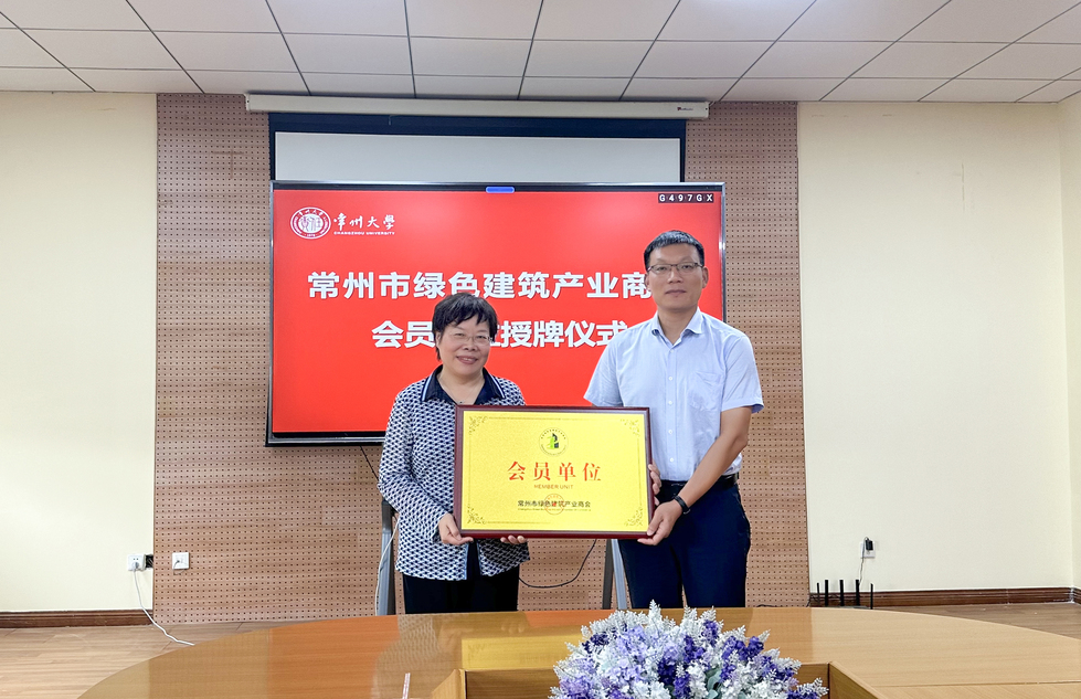 会后,吴建华代表常州市绿色建筑产业商会正式授予sm调教 会员单位牌匾。