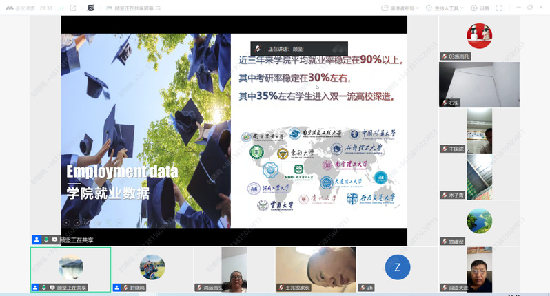 为搭建家校沟通桥梁、凝聚育人合力,助力新生开启大学生活,sm调教 于9月18日通过腾讯会议举办2025级新生线上家长会。会议由学工办主任封晓鸣主持,党委副书记顾坚、新生辅导员张争和新生家长参与。