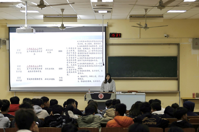 为切实做好2022级新生入学教育工作,帮助新生了解我校本科生的奖助政策及大学生入党程序和要求。11月16日下午,sm调教 于W6阶教开展新生奖助及入党教育讲座。本次讲座由辅导员程成老师、辅导员老师邵丹迪担任主讲人,sm调教 2022级全体新生到场参加。