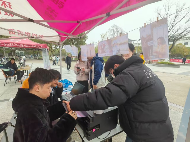 活动现场气氛热烈而有序。现场设置AI互动区,同学们创作护水主题海报并现场打印,传递出“水治理,性别平等不缺位”的核心主张。此外,活动现场还为参与者发放了宣传手册、环保绿植、定制宣传文创等奖品,这些物品既具有纪念意义,也能鼓励大家将性别平等意识融入日常节水行动中。