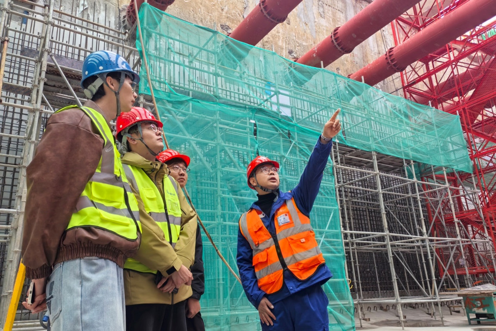 随后,全体人员前往东经 120 站施工现场开展实地参观与现场教学。施工技术人员沿途讲解施工要点,学院党员代表与带队教师分组陪伴学生,针对专业问题现场答疑,帮助学生近距离了解地铁建设实际场景,实现理论知识与工程实践的深度衔接。