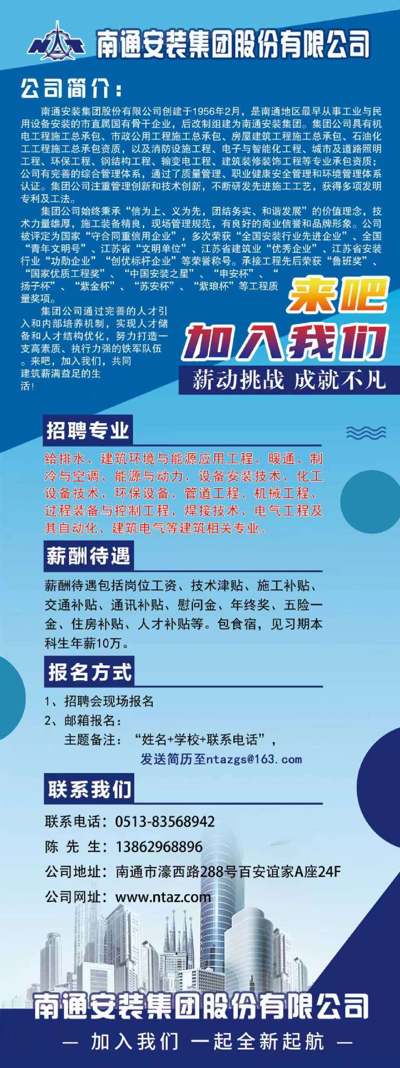 招聘速递[2026024]南通安装集团股份有限公司招聘