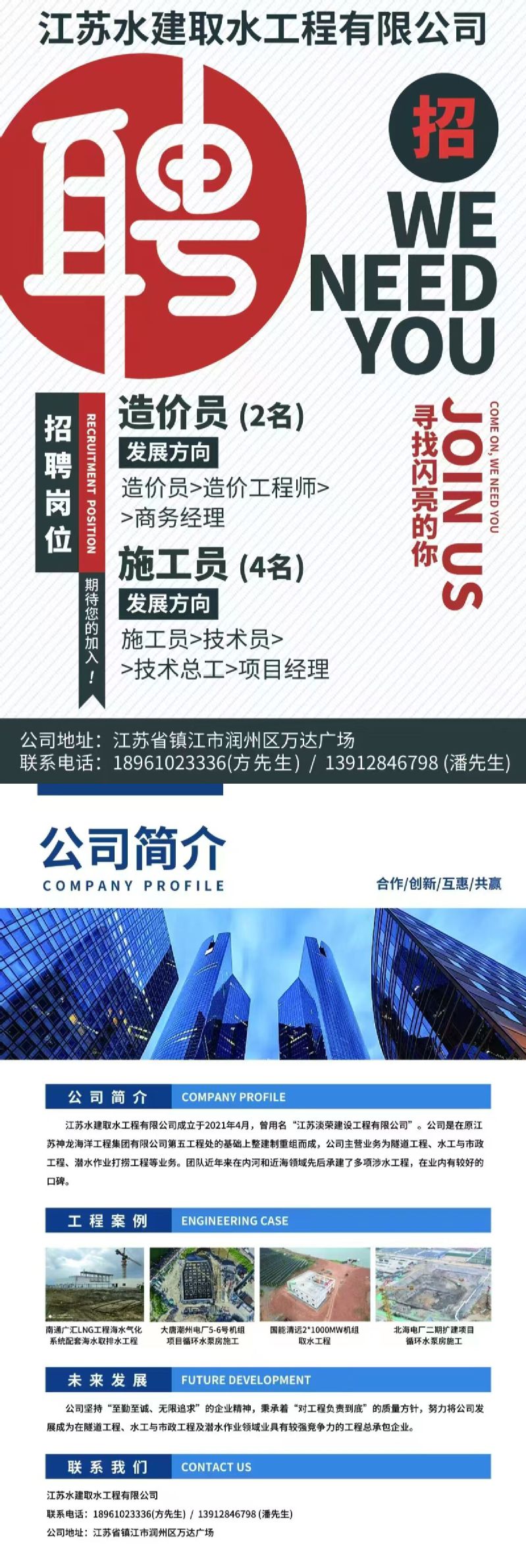 招聘速递[2026026]江苏水建取水工程有限公司招聘