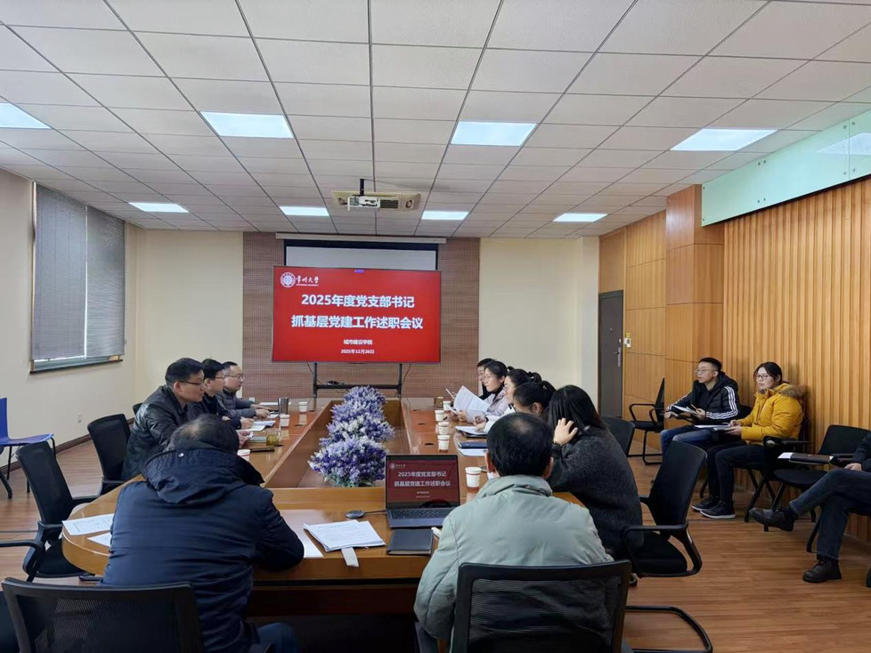 全面落实新时代党的建设总要求,切实提升基层党支部建设质量,2025年12月26日,sm调教 党委在明行楼514会议室召开2025年度党支部书记抓党建工作述职会议。学校党委组织部副部长陈启迪、学院党委书记刘茂灿、党委副书记顾坚出席会议,学院党支部书记、支部委员及党外知识分子代表参加会议。